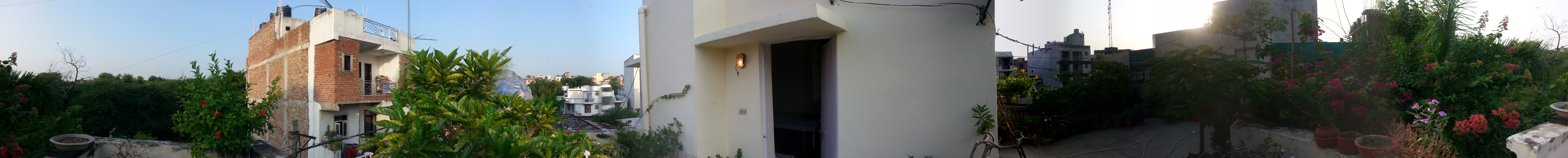I am unfortunately poor at written portraiture, but they are all very lovely people, rest assured. They even have a dog! And the house, too, is lovely: I am in a room on the roof with my own private bathroom and AC, and the roof is full of beautiful plants (tended by Ritaji, who says she has somewhat of a motherly affection for them) and has an excellent view, so I am super lucky with that. Our walk to the program house takes us through a section of tiny streets that are packed full of everything that one could possibly need, and a fair amount of the unnecessary as well. These roads are not for cars, but they are full of people and shops and temples and dogs and so many bright colors! and two-way motorcycle traffic and slum-dwellings and fancy apartments and delicious smells and quite noisesome smells.
