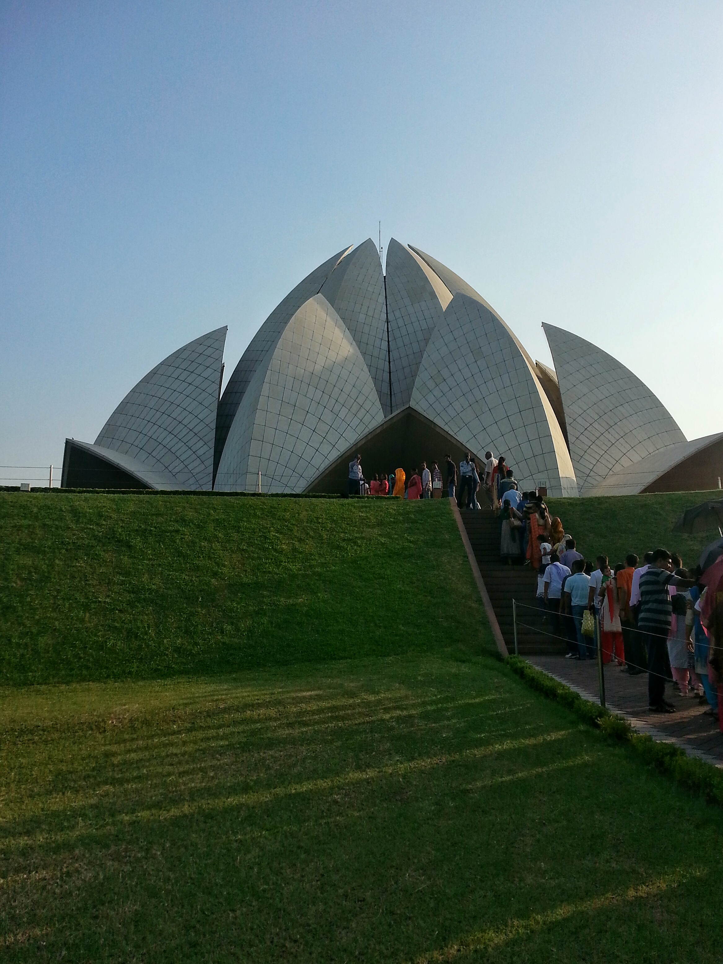 I found a seat somewhat near to the center of the lotus, which formed a very tall dome and as such had incredible acoustics. The ghostly murmur of hundreds of people trying to be silent and the occasional wail of a child formed a chorus that deserves the word sonorous or mellifluous more than anything else that I've heard. Or maybe: haunting. I wanted to record it, but I don't think that would have been smiled upon. And the contrast between the selfie'd tourists and the meditative people inside (although they were in fact the same people) was astounding or amazing or some such other adjective that I haven't quite overused yet. It was a good place.