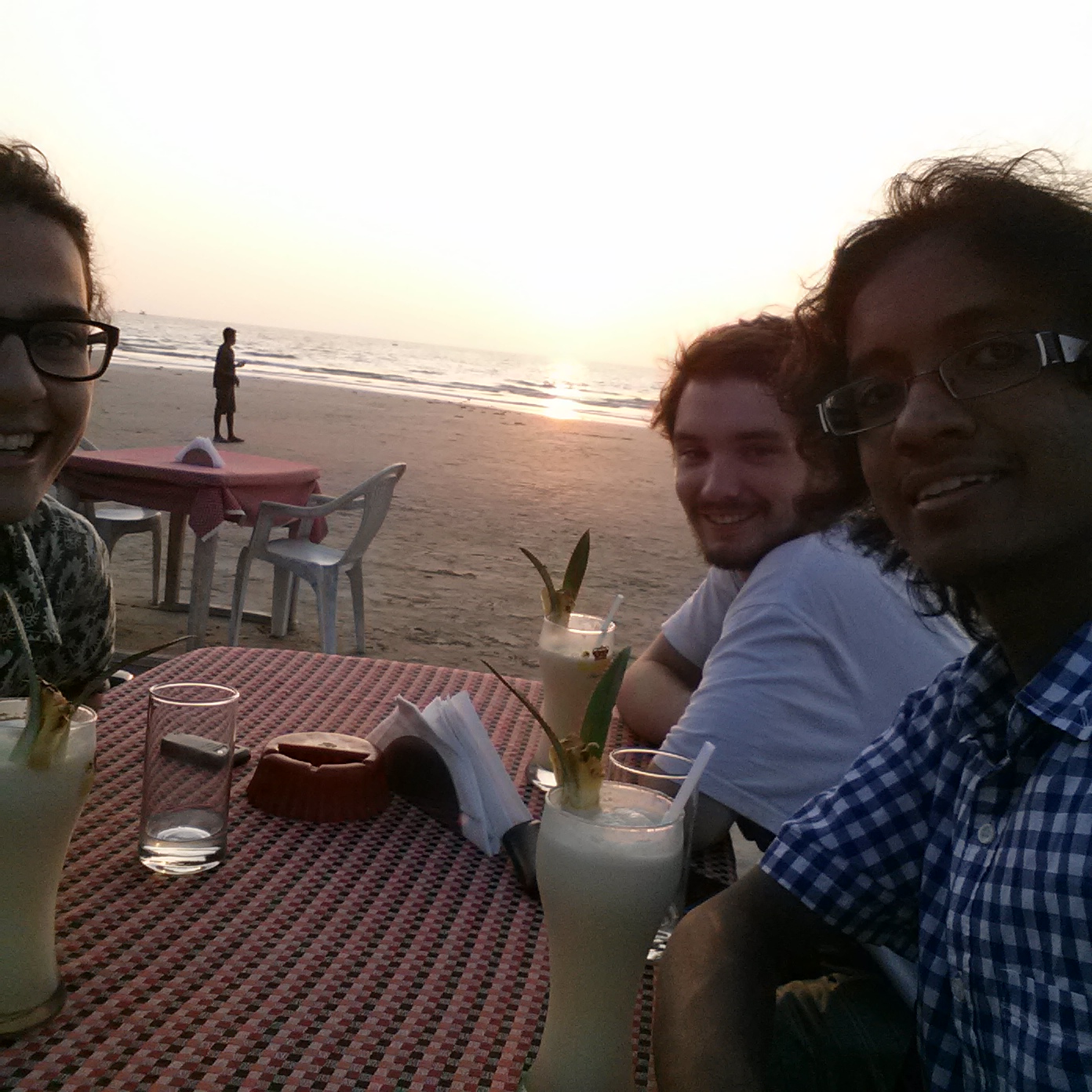 Ilan and I had arrived in Goa at 1 am on the 15th of December, twenty minutes after Aahlad arrived from Hyderabad. We were planning on spending the night in the airport, or, if that seemed particularly uncomfortable, getting a hostel somewhere close ish and taxiing there. Instead, Aahlad had the idea of calling Planet Hollywood resort, where we were to stay the next evening in an Executive Suite complete with ensuite massage chair. They sent a cab and gave us complimentary watermelon juice and checked us into our room, where we each enjoyed a massage and hot shower before falling to sleep in a large, soft bed with silk sheets. The cot they gave us that night happens to have been one of the most uncomfortable beds I've ever lay down upon, so we all three shared a bed, but there was room aplenty.