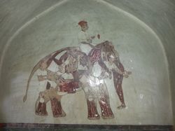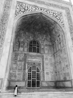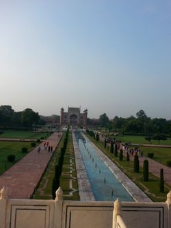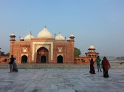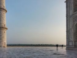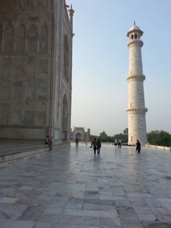 But then, we left the hotel at 5:30 the next morning and went to the Taj Mahal, catching it just after the sunrise in the soft morning light and before the atmosphere catches fire and your shirt becomes entirely saturated with sweat. The Taj is a very beautiful building; I'm sure you are aware of this. It looks pretty good up close. It was built by Shah Jahan, but the really nice place is actually the tomb of Shah Jahan's father's favorite wife's father, elsewhere in Agra, which is a lot smaller and less imposing but is covered in beautiful floral and ornithological decorations and white marble with inlaid precious stones and paintings and intricacy (the Mughals were all about their intricacy) and even had some monkeys nearby. And then we went and saw the fort in Agra, which had the usually awe-inspiring beauty and intricacy and white marble and deep red sandstone and inlaid precious stones and also some fun acoustical phenomena. And then we went home!