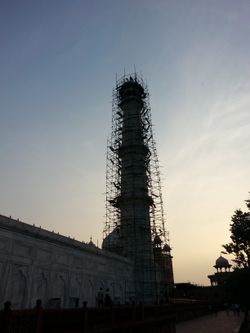 After a night in Orccha and a little bit more exploring (we tried to go to the jungle sanctuary, but it being midnight a guard from the hotel noticed us going that way and followed us out and told us we couldn't), we went on to Agra, where we stayed in a palatial hotel with shiny marble surfaces and wifi that cost way too much and a jacuzzi that cost money and beds that were extremely comfortable and: hot showers! Sheer luxury. We got in late, though, so all that we ended up doing was watching bits of the Dark Knight and 300 in our shinymarble rooms that evening, hanging out late in a very intelligent move as we were to leave the hotel at 5:30 the next morning.
