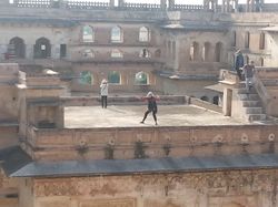 It is really pretty difficult to describe all this great architecture, magnificent and ostentatious and just hanging out in the hustle and bustle of modern of India – even in Orccha, a tiny town of 8,000 or so, this was noticeable. You are overwhelmed, impressed, blown-away by the size and intricacy and luxury and beauty, and you feel so very much like a tourist (because, I suppose, you are) engaging with a history that is once intricately connected with Indian Identity and simultaneously kind of not (the Mughals ruled for a very short time relative to the millenia of Indian history that exist, and were, after all, invaders and conquerors), and not engaging with contemporary India as it actually is, and you are shuffled around and paraded around and people want to take pictures with you (this seems to happen with much greater frequency among the women on our program), but the buildings are tall and clean and old and the sunrise is excellent and the monkeys quite cute.