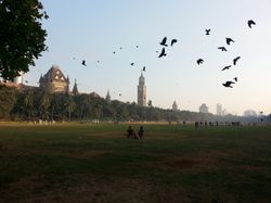 But so I got off the train at 5:30 in the morning with nowhere to go, nothing to do until I could check into my hostel at noon, not really aware of where I was, with large buildings standing imposingly all around and past the taxis and few small stands immediately outside of the train station, very few people and very few lights, all the shops closed and silent. I searched for a park with a park bench to sit and maybe read – none was to be found. So I turned towards the east, where the first lights of sunrise was just beginning to illuminate the sky. There was an ocean in that direction, or at least a body of water. Bombay is located on a series of seven islands, connected and now difficult to notice through the metropolitan sprawl, and I was near the tip at the last one protruding into the harbor, a relatively narrow island that takes about 20 minutes to walk across. So I set off: the ocean, at sunrise, would be a pleasant site.