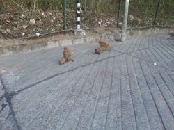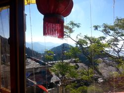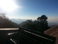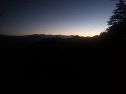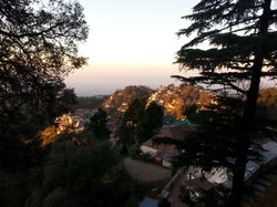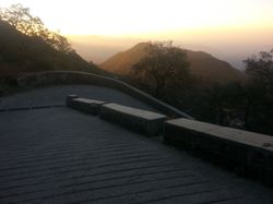 From Dehradund, after a particularly mediocre lunch and too much chicken chow mein (Indian Chinese food is an interesting thing), we boarded a taxi thatdid take us up into the hills, around some hairpin turns with cars rushing towards us and for those more senstive to motion sickness or those trying to sleep or those with an unfortunate headache, it was not a great ride. I nhad fun, though! The sun, by this time, was approaching the horizon. You could see for miles, around sharp peaks, and little towns grew in the hills (these ones deserving to be called mountains much much more than those measly things I saw down in Maharashtra, but also dwarfed by the distant snow-capped Himalayas, visible only occasionally on the drive). And you couldn't see the horizon: the fog or smog or what have you blurred the lines when you looked over the edge, and the flat plains below melted into a greyish smudge. At times it felt like you were looking over the edge of the world, as all that was visible was the steeply declining slopes. The sun eventually kissed the horizon, several degrees above where I was picturing it, right about as we drove in to Mussoorie, our destination.