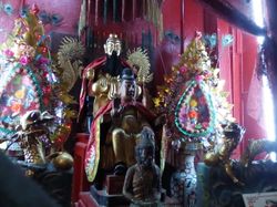 While researching travel around here, a lot of the internet suggested flying or taking an overnight train, but I opted instead for a day bus (shorter, I might add ,than the train, although maybe not in hours-spent-conscious). I have discovered: I really enjoy bus travel! I can sit in the back seat, I don't have to drive, I can watch the countryside and I can fall asleep. I can read, and glance up from time to time for long boughts of watching the land evolve, change over the hours and the hundreds of kilometers. And there is air conditioning! And it is the cheapest option! The first few hours were flat, farm land or wilderness after we had emerged from the outskirts of Bangkok. It reminds me in many ways of the drive to Montreal from just north of the Vermont border: very sparsely populated, very green, very farms. Although the palm trees rather ruin this illusion. After four hours or so, the first hills emerged in the distance, and they have been increasing in frequency ever since. A few towering rock knife-edges we've passed close by have temples and monasteries set against their sides: these large Buddhist temples seem more frequent than anything of comparable size in India, Nepal or Myanmar (although Hindu temples are probably more frequent, they are also most commonly just a small room, a building that could not fit a person or, say, a large dog next to the statues within). Also, strangely frequent along this highway, despite the fact that I have not noticed any towns bigger than what amounts to a truck stop and a few houses: shops selling large quantities of large, colorful statues? Of animals and Buddhas? Don't really know what that is all about. And now the sun is on its way down as the mountains get higher and higher, as I get closer and closer to Chiang Mai and the adventure that that city holds for me, and I am sleepy and hungry and today was a day well spent.